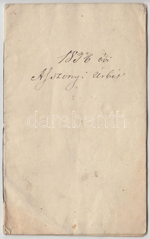 1936 Az asszonyi úrbér. Elmés gyúny-irat, melly az 1835/6 évi Országgyűlésen készítetett az úrbéri törvényjavaslathoz alkalmaztatva. Kézzel írt humoros irat, 10 beírt oldal, szerző nélkül