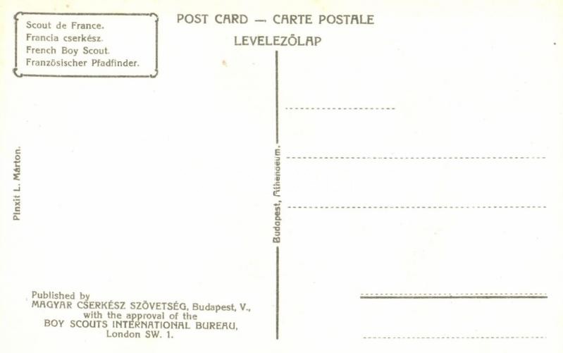 Francia cserkész; kiadja a Magyar Cserkész Szövetség / French boy scou... https://www.darabanth.com/hu/26-Nagyaukcio/26.1/Motivum-kepeslapok/Cserkesz~10208/Francia-cserkesz-kiadja-a-Magyar-Cserkesz-Szovetseg-French-boy-scout-s-Marton-L~II1477925