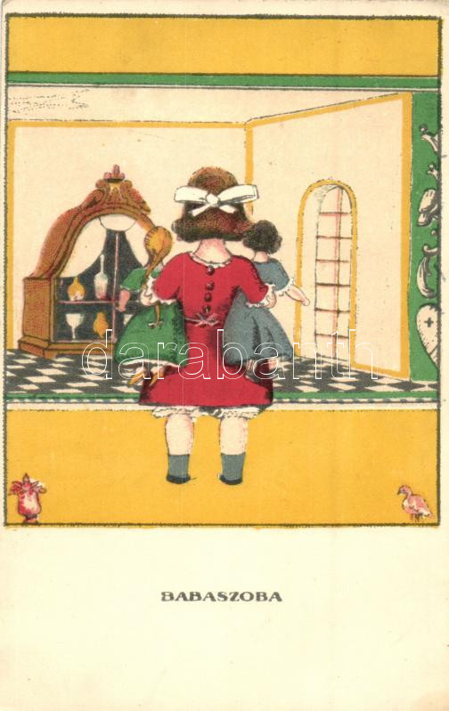 Babaszoba 'Egy jó kislány viselt dolgai' képeslap sorozat / Hungarian ... https://www.darabanth.com/hu/26-Nagyaukcio/26.1/Motivum-kepeslapok/Muveszlapok~10225/Babaszoba-Egy-jo-kislany-viselt-dolgai-kepeslap-sorozat-Hungarian-art-postcard-s-Kozma-Lajos~II1482935