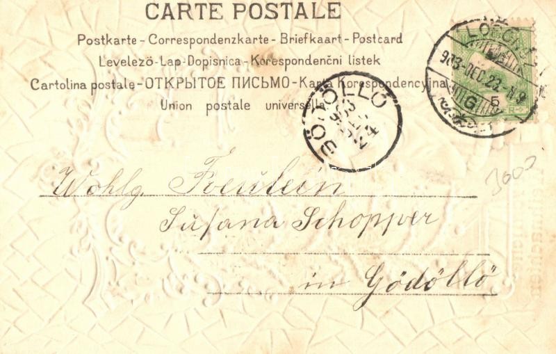 Leírás: Fröhliche Weihnachten / Christmas greeting card, Emb. golden decorated