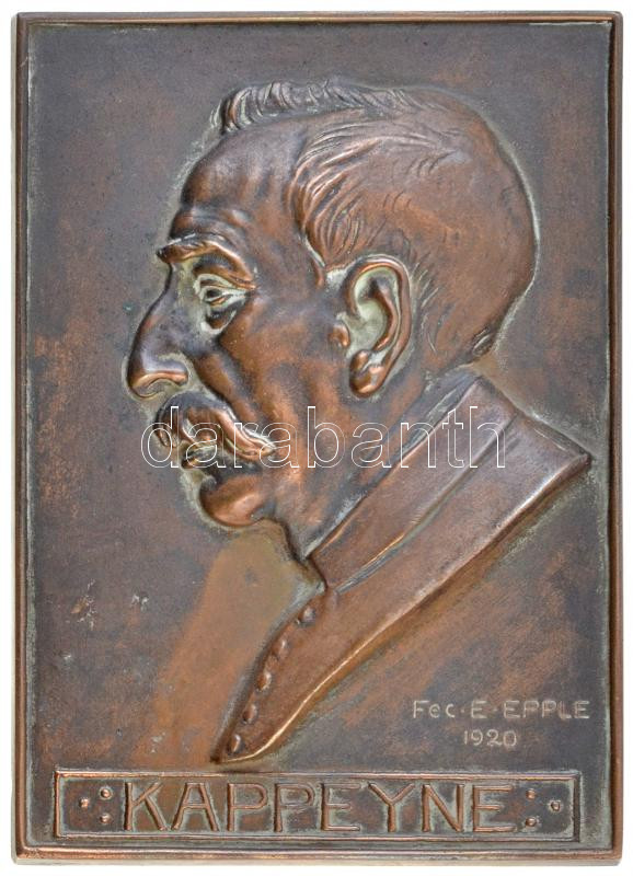 Németország 1920. "Kappeyne" Br dombormű, hátoldalon két ponton akasztónyom. Szign.: Emil Epple (111x156mm) T:2 / Germany 1920. "Kappeyne" Br relief with hanging spots at two points. Sign.: Emil Epple (111x156mm) C:XF