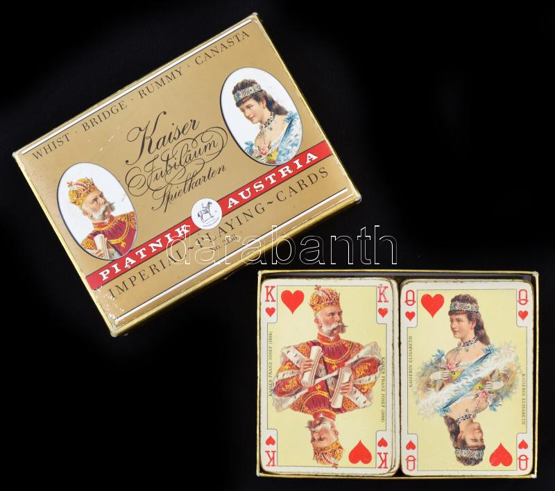 Ferenc Józsefet és Sisit ábrázoló Piatnik francia kártya eredeti doboz... https://www.darabanth.com/hu/260-Gyorsarveres/260.0/Festmeny-mutargy-papirregiseg-egyeb/Bolhapiac~10/Ferenc-Jozsefet-es-Sisit-abrazolo-Piatnik-francia-kartya-eredeti-dobozaban~II1286101