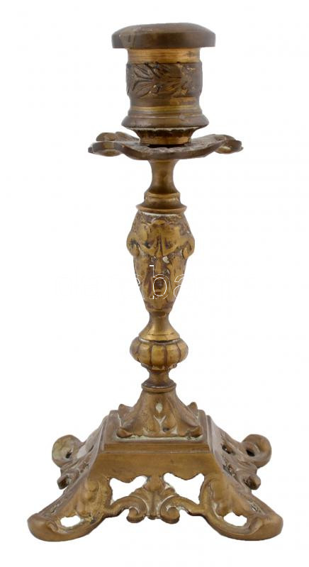 Leírás: Gazdagon díszített réz gyertyatartó, m: 19 cm