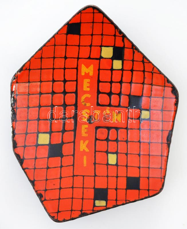 Leírás: "Mecseki szén" feliratú tűzzománcozott fém tálka, jelzés nélkül, kopásnyomokkal, 13,5×10,5 cm