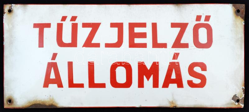 "Tűzjelző állomás" - zománcozott fém tábla, sérülésekkel, 15x35 cm https://www.darabanth.com/hu/260-Gyorsarveres/260.0/Festmeny-mutargy-papirregiseg-egyeb/Bolhapiac~10/Tuzjelzo-allomas--zomancozott-fem-tabla-serulesekkel-15x35-cm~II1285056