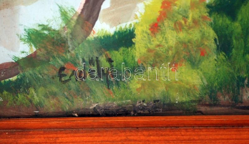 Leírás: Erdélyi jelzéssel: Erdőirtás. Tempera, karton, üvegezett keretben, 50×42 cm