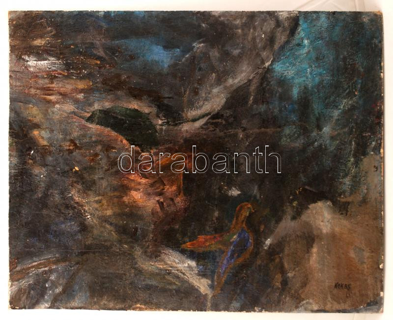 Kokas jelzéssel: Kék madár. Olaj, farost, sérült, 60×80 cm https://www.darabanth.com/hu/260-Gyorsarveres/260.0/Festmeny-mutargy-papirregiseg-egyeb/Festmenyek-es-grafikak~400053/Kokas-jelzessel-Kek-madar-Olaj-farost-serult-60C39780-cm~II1280748