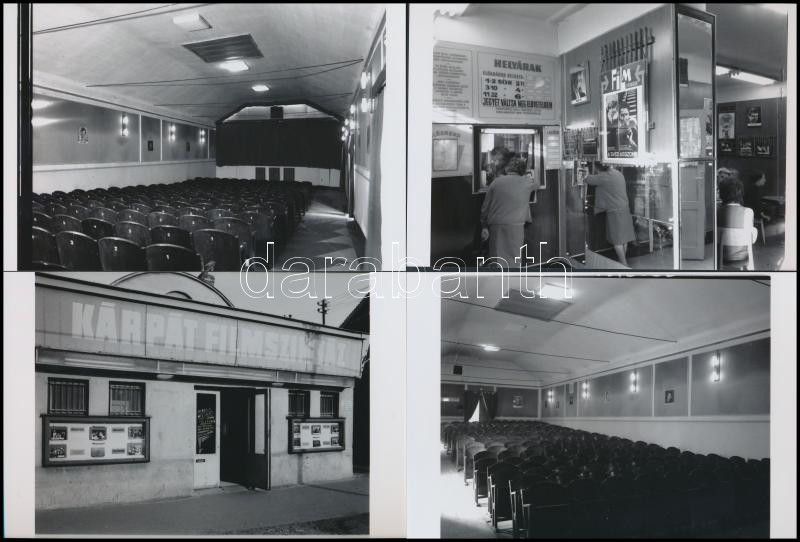 1973 Budapest, KÁRPÁT mozi kívül-belül, 4 db korabeli professzionális felvételről készült modern nagyítás, adatolva a negatívokat nyilvántartó füzetben volt, 10x15 cm