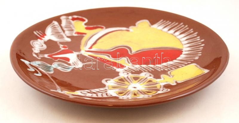 Leírás: Iparművészeti Vállalatos retro fali tál, kézzel festett, jelzett, hibátlan, d:29 cm