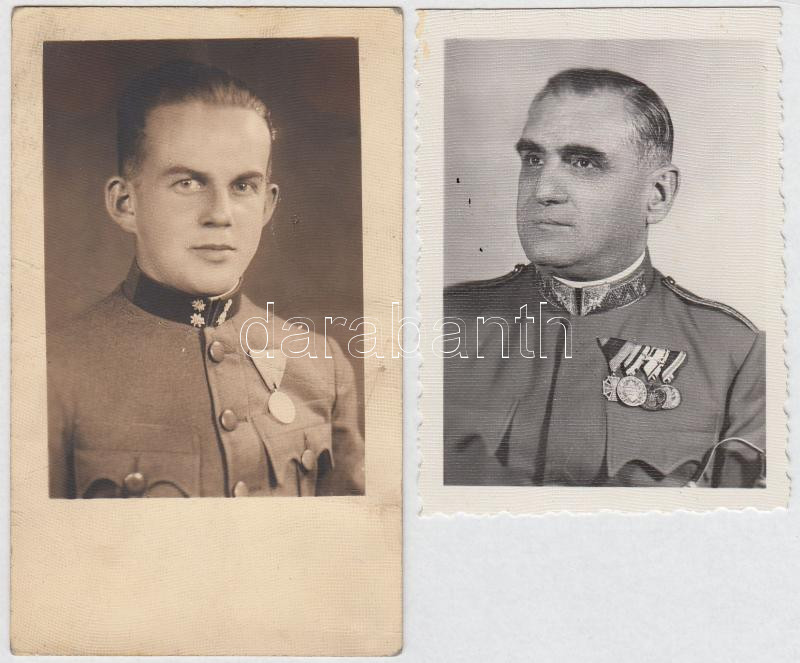 Leírás: cca 1940-1950 Katonák kitüntetésekkel, 2 db fotó, 6,5x8,5 és 11,5x7 cm / soldiers, 2 photos, 6,5x8,5 and 11,5x7 cm