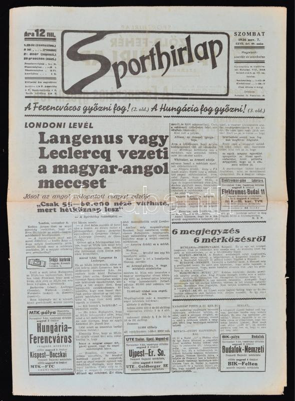1936 Sporthírlap, pp.:8, 47x32cm https://www.darabanth.com/hu/260-Gyorsarveres/260.0/Festmeny-mutargy-papirregiseg-egyeb/Nyomtatvanyok~26/1936-Sporthirlap-pp8-47x32cm~II1286906