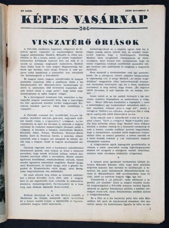 Leírás: 1938 A hazatért Felvidék IV. Rimaszombat, Rozsnyó, a Képes Vasárnap tematikus lapszáma (dec. 4.), számos érdekes írással, illusztrációkkal