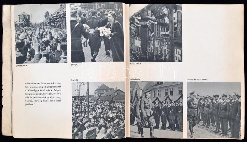 1941 Európa győzelme. Kivonatok Hitler Adolf a hadvezér és államférfi 1941 október 3.-i beszédéből. Sok képpel illusztrált kiadvány. Kissé viseltes állapotban. 26x24cm