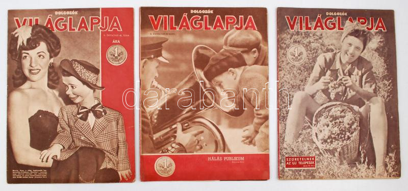 1946 Dolgozók Világlapja, II. évfolyam 40., 42. és 45. szám https://www.darabanth.com/hu/260-Gyorsarveres/260.0/Festmeny-mutargy-papirregiseg-egyeb/Nyomtatvanyok~26/1946-Dolgozok-Vilaglapja-II-evfolyam-40-42-es-45-szam~II1285105