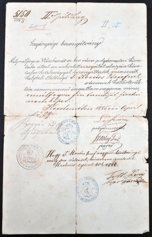 Leírás: Nagy régi okmánytétel, legalább 100 db, iratrendezőben