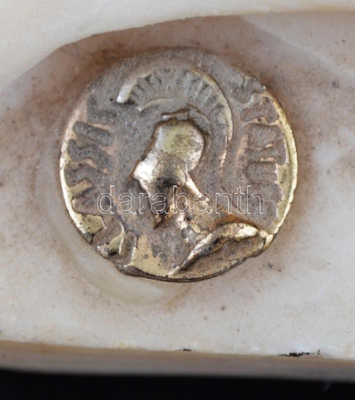 Leírás: A haldokló Achilles, alabástrom szobor, jelzett, apró kopásnyomokkal, m: 16 cm