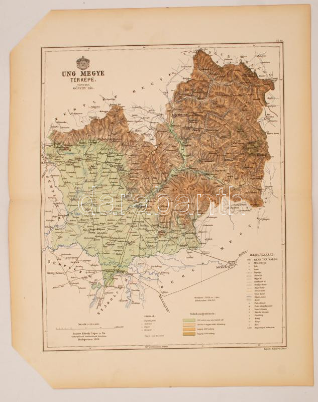 Ung megye térképe, Gönczy Pál - Kogutowicz Manó: Magyarország megyéinek kézi atlasza. Tervezte: - -, rajzolta: - - Bp. (1890.) Posner Károly Lajos és fia. Sarok levágva , 57x44cm