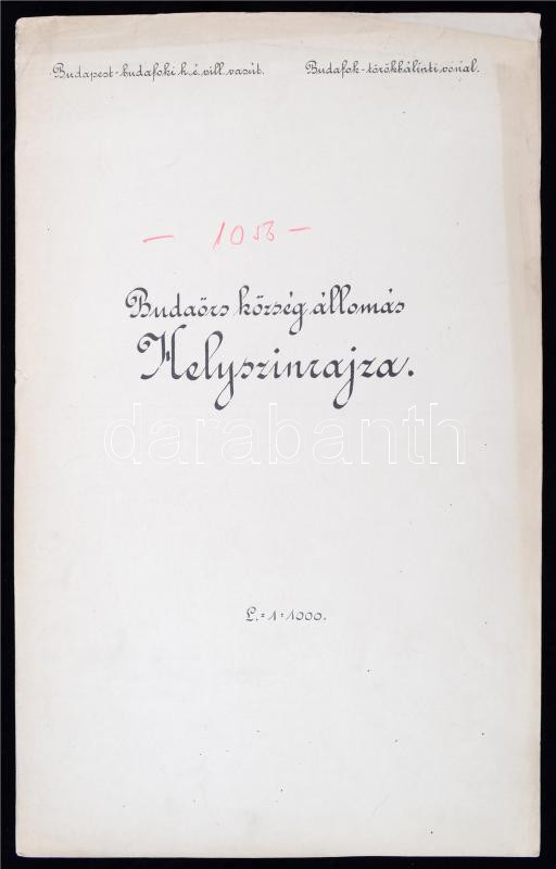 Budaörs község állomás Helyszínrajza, 1:1000, 34x42cm https://www.darabanth.com/hu/260-Gyorsarveres/260.0/Festmeny-mutargy-papirregiseg-egyeb/Tortenelmi-dokumentumok-keziratok-erdekessegek~16/Budaors-kozseg-allomas-Helyszinrajza-11000-34x42cm~II1287521
