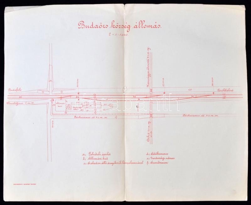 Leírás: Budaörs község állomás Helyszínrajza, 1:1000, 34x42cm