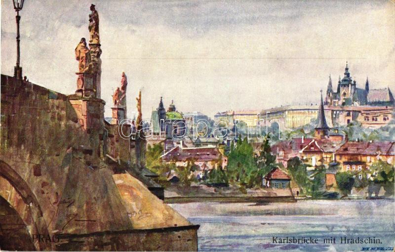 Praha, Prag; Karslbrücke, Hradschin / bridge s: J. Safarík https://www.darabanth.com/hu/260-Gyorsarveres/260.0/Kepeslapok/Cseh-Koztarsasag~100012/Praha-Prag-Karslbrucke-Hradschin-bridge-s-J-Safarik~II1244319