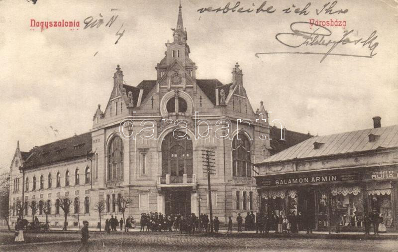 Nagyszalonta, Salonta Mare; Városháza, Salamon Ármin üzlete, kiadja Pa... https://www.darabanth.com/hu/260-Gyorsarveres/260.0/Kepeslapok/Erdely~100020/Nagyszalonta-Salonta-Mare-Varoshaza-Salamon-Armin-uzlete-kiadja-Patocs-Janos-town-hall-~II1286467