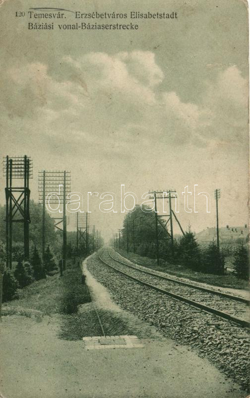 Temesvár, Timisoara; Erzsébetváros, Báziási vasútvonal / railway (fa) https://www.darabanth.com/hu/260-Gyorsarveres/260.0/Kepeslapok/Erdely~100020/Temesvar-Timisoara-Erzsebetvaros-Baziasi-vasutvonal-railway-fa~II1283470