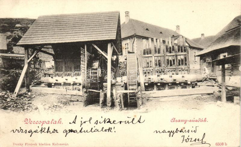 Leírás: Verespatak, Roisa Montana; Arany-zúzdák, kiadja Dunky fívérek / gold mines (EK)