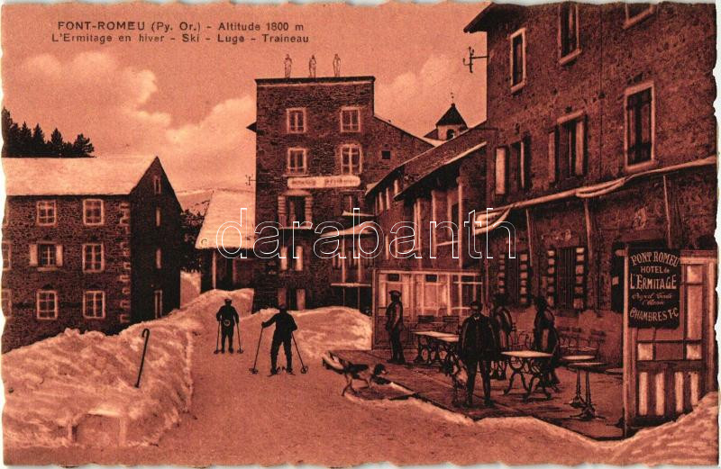 Leírás: Font-Romeu-Odeillo-Via, Ermitage en hiver, Luge, Traineau / hotel, winter, skiers