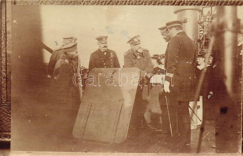 1916 SMS Bodrog, Temes-osztályú monitor a bulgáriai Ruse-ben, I. Ferdinánd bolgár cár és haditengerészeti tisztek / SMS Bodrog, Temes-class monitor in Ruse, Bulgaria; Ferdinand I of Bulgaria with Navy officers, photo