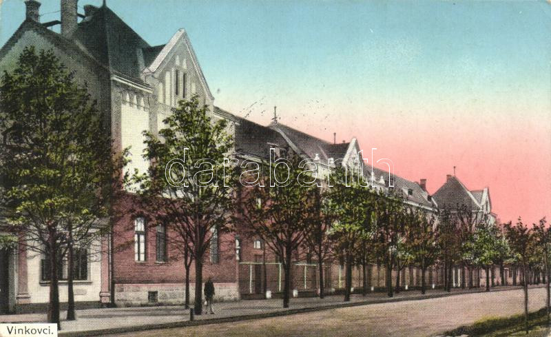 Vinkovci, Vinkovce; Magyar iskola, utca / street, Hungarian school https://www.darabanth.com/hu/260-Gyorsarveres/260.0/Kepeslapok/Horvatorszag-Delvidek~100024/Vinkovci-Vinkovce-Magyar-iskola-utca-street-Hungarian-school~II1286369