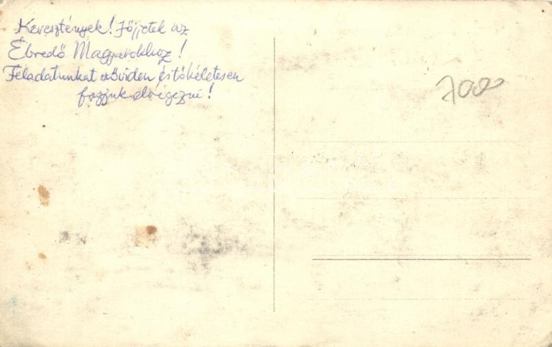 "Keresztények! Jöjjetek az Ébredő Magyarokhoz! Feladatunkat rövid... https://www.darabanth.com/hu/260-Gyorsarveres/260.0/Kepeslapok/Judaika~100093/Keresztenyek-Jojjetek-az-Ebredo-Magyarokhoz-Feladatunkat-roviden-es-tokeletesen-fogjuk-el~II1283747