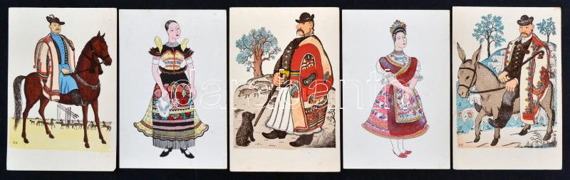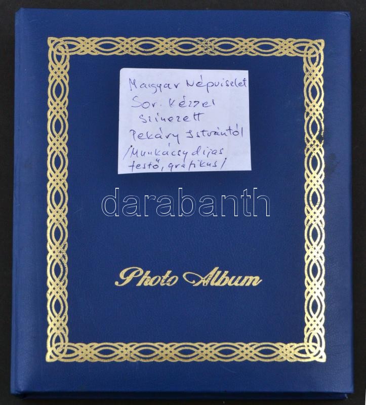 Magyar Népviseletek képeslapsorozat Pekáry István kézzel színezett rajzaival, 20 db régi magyar folklór motívumlap albumban / 20 old Hungarian folklore motive cards, postcard series signed by Pekáry István in album