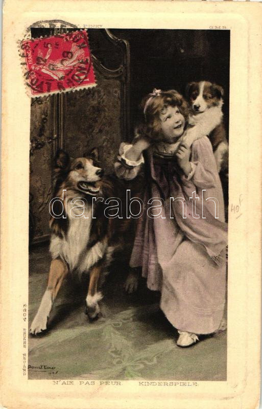 Leírás: 'N'Aie Pas Peur - Kinderspiel' / Child with dogs, s: Eibley (Rb)