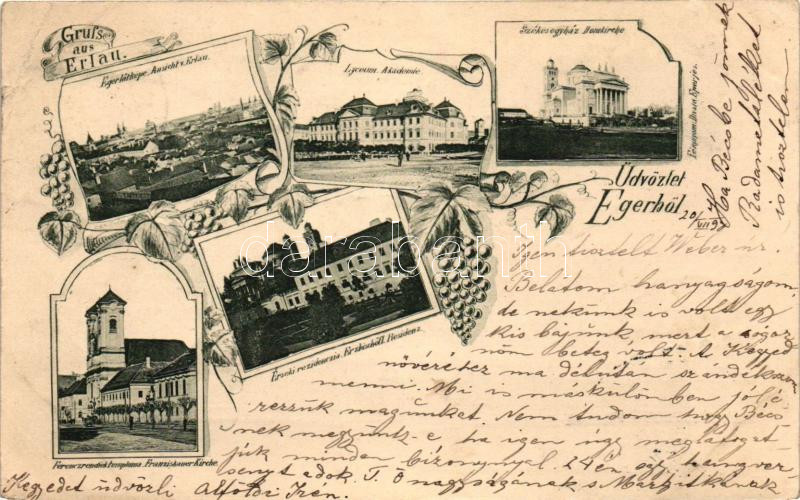 1898 Eger, Líceum, Székesegyház, Érseki rezidencia, Ferenc rendi templ... https://www.darabanth.com/hu/260-Gyorsarveres/260.0/Kepeslapok/Magyarorszag~100019/1898-Eger-Liceum-Szekesegyhaz-Erseki-rezidencia-Ferenc-rendi-templom-floral-Art-Nouveau-k~II1284812