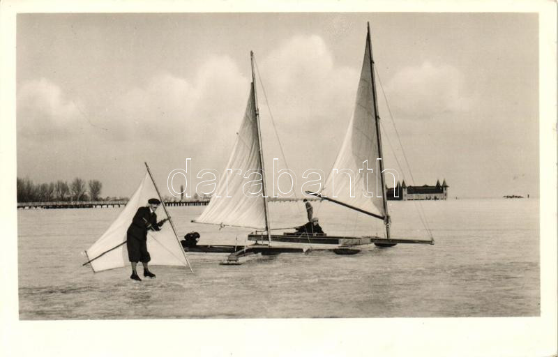 Balatonfüred, Jégvitorlázás a befagyott Balaton jegén https://www.darabanth.com/hu/260-Gyorsarveres/260.0/Kepeslapok/Magyarorszag~100019/Balatonfured-Jegvitorlazas-a-befagyott-Balaton-jegen~II1283863