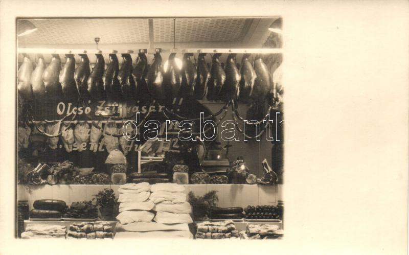 Leírás: Ismeretlen magyar város, Hentes üzlet belseje, photo