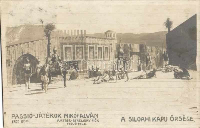 Mikófalva, Passió játék, a Silohai kapu őrsége, Amster-Strelisky felvé... https://www.darabanth.com/hu/260-Gyorsarveres/260.0/Kepeslapok/Magyarorszag~100019/Mikofalva-Passio-jatek-a-Silohai-kapu-orsege-Amster-Strelisky-felvetele~II1062755