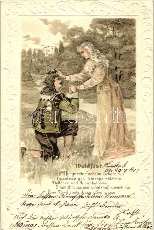 Waldfest, couple, Art Nouveau Emb. litho https://www.darabanth.com/hu/260-Gyorsarveres/260.0/Kepeslapok/Muveszlapok~100106/Waldfest-couple-Art-Nouveau-Emb-litho~II1242966