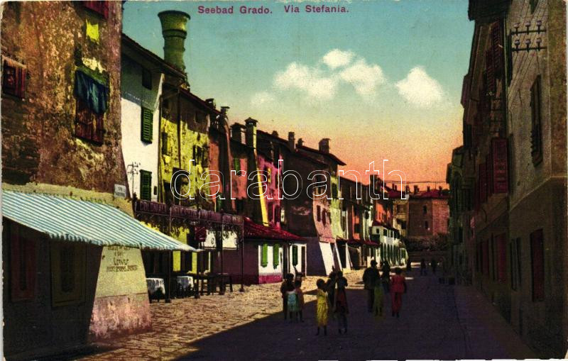 Grado; Via Stefania, Verlag Emil Wokulat / street https://www.darabanth.com/hu/260-Gyorsarveres/260.0/Kepeslapok/Olaszorszag~100048/Grado-Via-Stefania-Verlag-Emil-Wokulat-street~II1284717