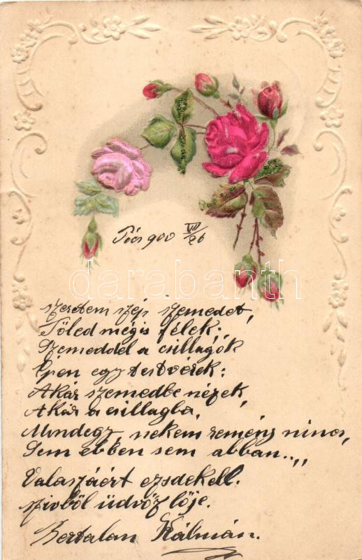 Leírás: Floral greeting card, Emb. litho silk card (EK)