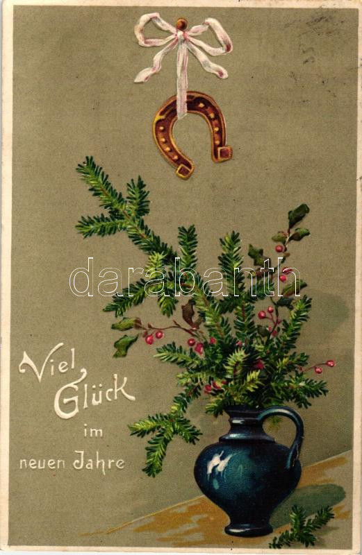 New Year, horse shoe Emb. litho https://www.darabanth.com/hu/260-Gyorsarveres/260.0/Kepeslapok/Udvozlolapok-Unnepek~100077/New-Year-horse-shoe-Emb-litho~II1239967