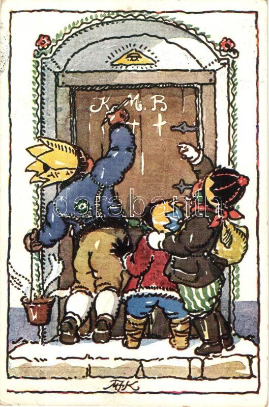 'Vánocni a novorocni pozdrav! / Christmas, New Year, children pai... https://www.darabanth.com/hu/260-Gyorsarveres/260.0/Kepeslapok/Udvozlolapok-Unnepek~100077/Vanocni-a-novorocni-pozdrav-Christmas-New-Year-children-painting-on-the-door-Minerva-No-641~II1246800