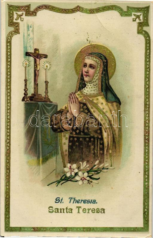 St. Theresia, golden decorated, litho (EB) https://www.darabanth.com/hu/260-Gyorsarveres/260.0/Kepeslapok/Vallas~100070/St-Theresia-golden-decorated-litho-EB~II1239489