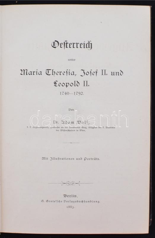 Wilhelm von Oncken: Allgemeine Geschichte in Einzeldarstellungen. III/9. Berlin, 1883, G. Grote. 333 p. 1740-1792 - Mária Terézia, II. József és II. Lipót kora. Kiadói aranyozott, kissé kopott félbőrkötésben.