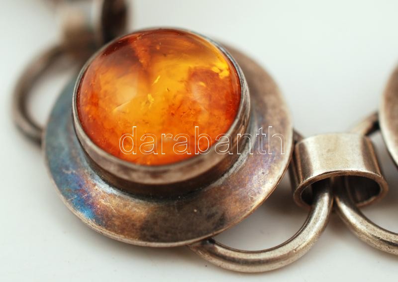 Leírás: Ezüst és borostyán karlánc / Silver and amber bracelet br: 29,2 g
