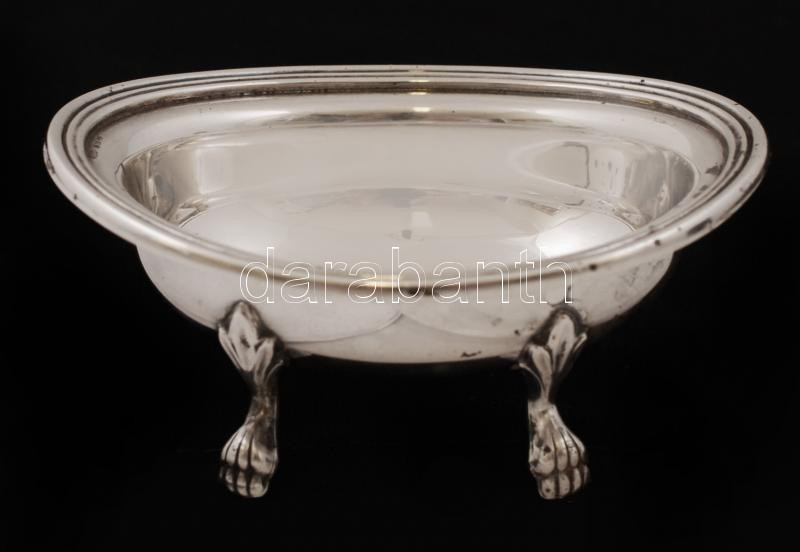 Ezüst, lábas kínáló, Ag., nettó:60gr., jelzett, kis hibával, cca 4x10cm/ Silver Bowl, Ag., net.., 60gr, marked, with a small error, circa 4x10cm