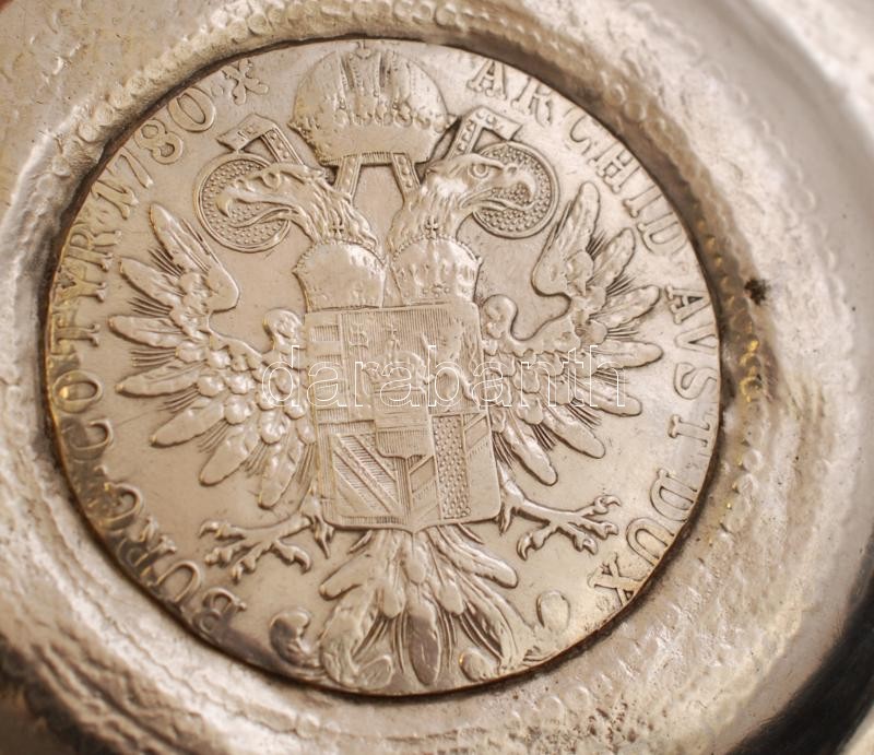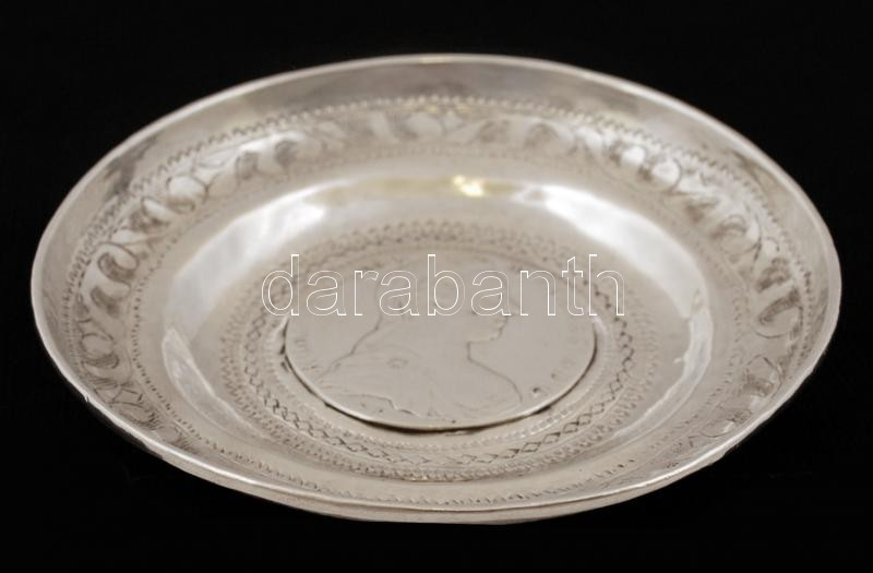 Leírás: Mária Terézia talléros (utánvert) ezüst kalapált tálka , Ag., nettó:63gr., jelzés nélkül, d:10cm /Maria Theresa thalers hammered silver bowl, Ag, net.. 63gr, without hallmark, d: 10cm