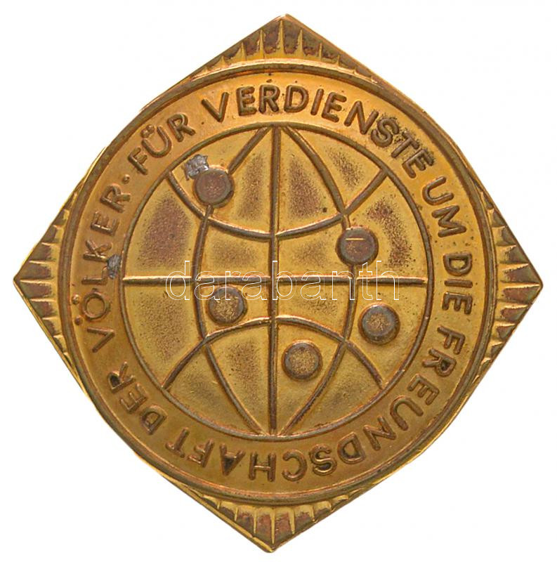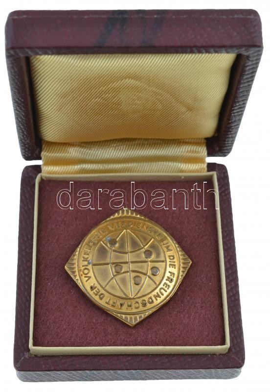 NDK ~1960. "Népek Közötti Barátságért Liga" fém jelvény dísztokban (33mm) T:2
