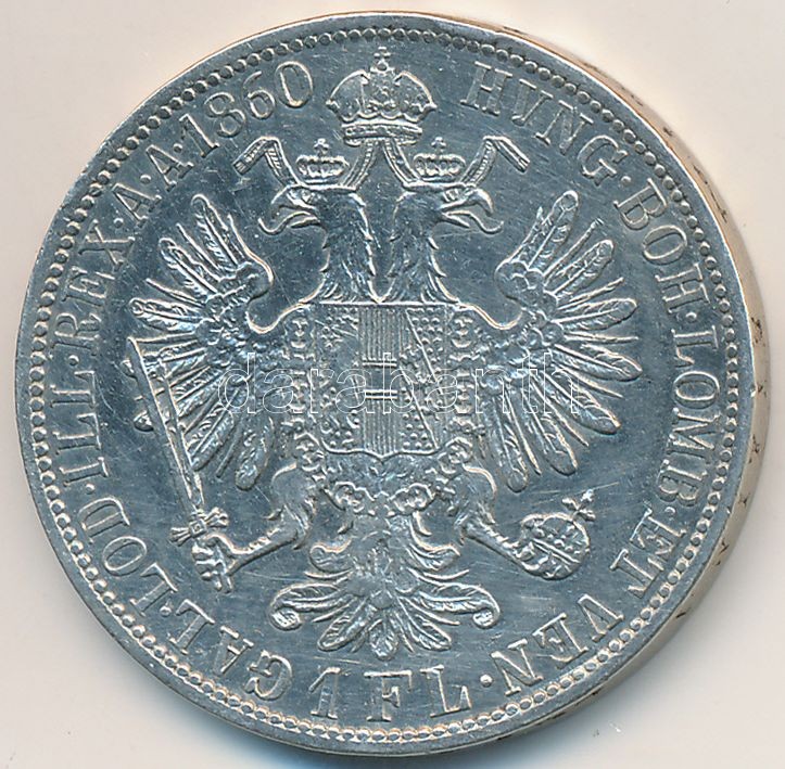 Austria 1860A ... https://www.darabanth.com/hu/260-Gyorsarveres/260.0/Numizmatika/Kulfoldi-fem-es-ezustpenzek~300020/Ausztria-1860A-1Fl-Ag-Ferenc-Jozsef-T2-2---Austria-1860A-1-Florin-Ag-Franz-Joseph-CXF-VF~II1281031