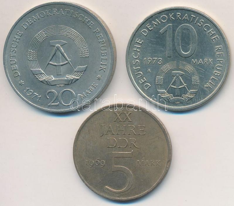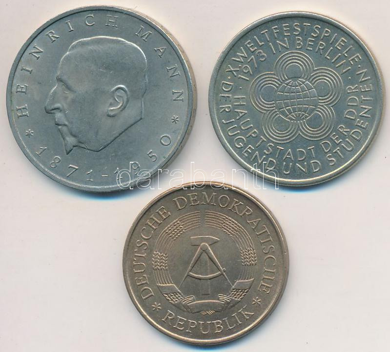 Leírás: NDK 1969. 5M + 1971A 20M Cu-Ni "Heinrich Mann" + 1973A 10M Cu-Ni "10. Ifjúsági Játékok" T:2